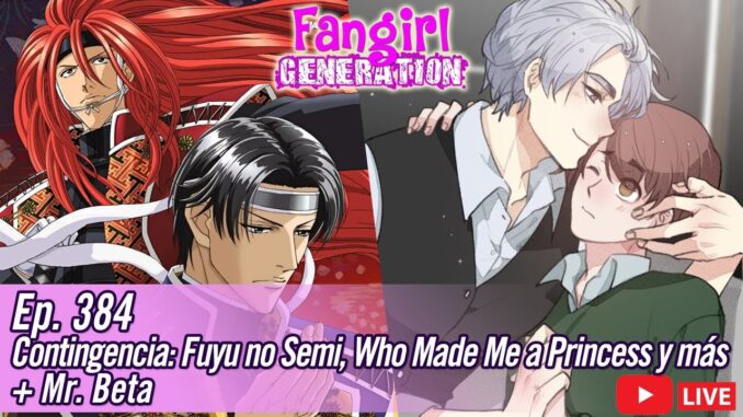 Esta noche como siempre estaremos comentando las últimas noticas del mundillo en la «Contingencia Fangirl», incluyendo novedades de «Fuyu no semi» y los animes que se vienen, como «Who made me a princess», «The Invisible Man and His Soon-to-Be Wife», entre otros y luego, para seguir pagando nuestras deudas, estaremos desgranando el webcomic «Mr. Beta», pedido por nuestra #FanQueSeRespeta Crazy Love 😀