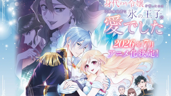 La editorial digital Funguild, parte del Nippan Group, anunció este miércoles recién pasado, que el manga Saved by the Ice Cold Prince’s Embrace (Migawari Reijō o Sukutta no wa Reikoku Mujihi na Kōri no Ōji no Ai Deshita)—adaptación de la historia original de Hokuhoku Yakiimo con arte de Kusabi Kurokawa— llegará a la pantalla en formato “light anime”. El estreno está programado para julio a través del canal TV Kanagawa.
